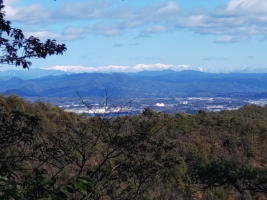 | 日照岳は、ヒデリダケではなくニッショダケと呼ぶのか? 登山道はなく、下部に送電線の巡視路があるだけで、3月から4月にかけて残雪期などに登山や山スキーが行われる山で、山頂からは白山を望むことができる山でしたが、最近、登山道の笹刈を行い、登山道を整備したと聞いて、今回、登ることとしました。 11月末のため、落ち葉が霜で濡れて滑りやすく、さらに、笹の根が滑りやすい。 さらに、山頂付近では降ったばかりの雪が落ち葉の上に残って、さらに滑りやすかった。 登山道の東を向くと、北アルプスの全貌が見られ、山頂の西側から白山が見ることが出来ました。 この付近は熊の生息域なので、鈴や笛やラジオや鉄砲火薬を鳴らしながら登山しました。 (ブログ https://kakamigahara-sangaku.fc2.net/blog-entry-571.html) |