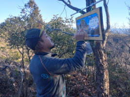 | 関南アルプスの覗き岩-奥の院ルートから西側の天狗鼻、ふどうーの新岩巡りルートの確定作業を行 い、金山手前の双岩見晴台と太平山手前の太平見晴台の看板取付を行った。 二つの岩場及び二つ の見晴台とも、御嶽山や乗鞍岳が良く見える新しいスポットです。新岩場ルートは今後、本格的な整備に 入ります。 |
